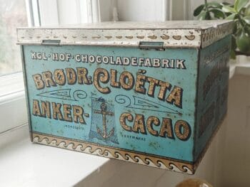Cloetta Anker Cacao. Stor firkantet kage- Blikdåse fra Glud og Marstrand