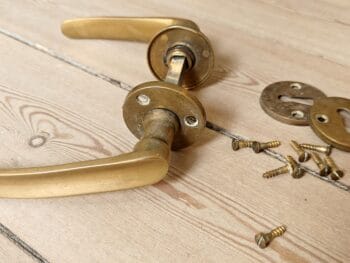Dørgreb i messing. Sæt. Inkl. nøglehuller