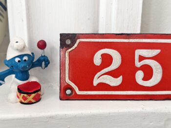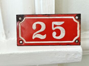 Havelågeskilt Nr. 25. Emalje rød og hvid
