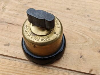 Afbryder. Trappeafbryder (vrider). Messing og porcelæn m. bakelit-vrider. Model 4