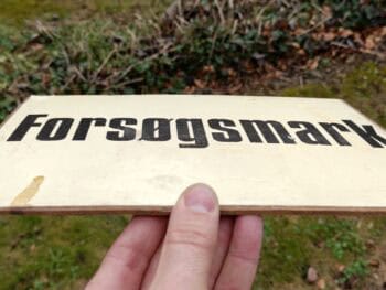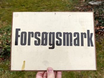 Forsøgsmark. Masonitskilt