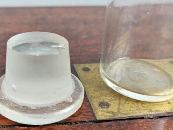 Medicinglas med kinesisk skrift på toppen