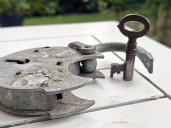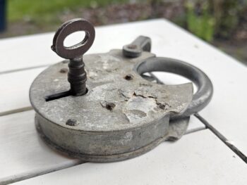 Utrolig lækkert og atypisk gadespejl. Til montering på pal/beslag foran vindue i gadeplan (bemærk hullet). Man kan således se og følge med i gadens færden. Og så ser det jo bare chamerende ud.