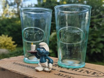Snapseglas i tykt glågrønt glas (sæt af 2)