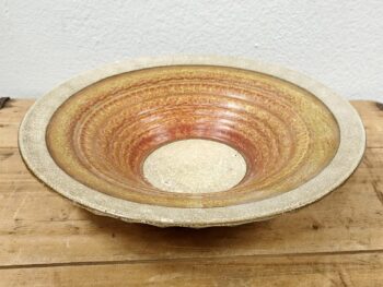 Lækker signeret stentøjsskål med glasur i naturfarver