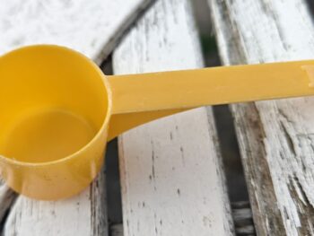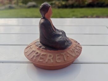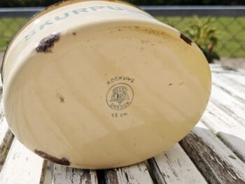 Melkrukke i fejance med trælåg. Mrk. Mjöl