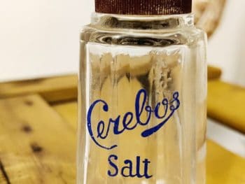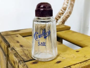 Cerebos Salt. Saltbøsse i glas med bakelit-top