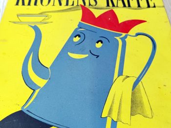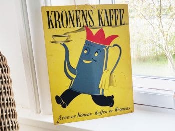 Kronens Kaffe. Kaffen er konens. Papskilt, reklame med madamblå
