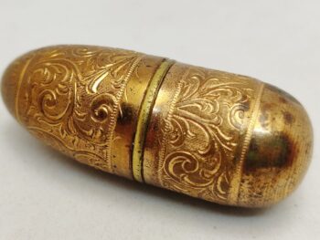 Antikke bogstøtter i messing og lakeret træfiner med motiv