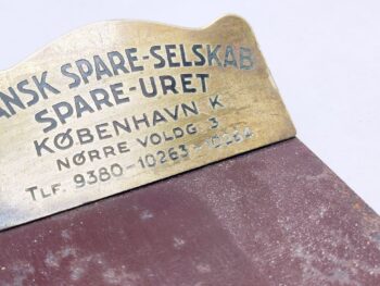 Papirholder med reklame for Danske Spare-Selskab Spare-Uret København K Nørre Volgade 3. Tlf. 9380 10263 10264