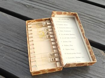 Gamle objektglas til mikroskop med indhold. Prepared Slides of Vegetable. Miniature size. No 6