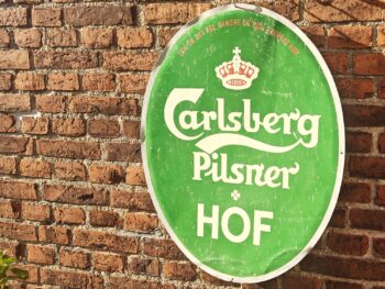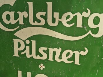 Carlsberg blikskilt. Ovalt. Stort. Gammelt