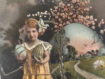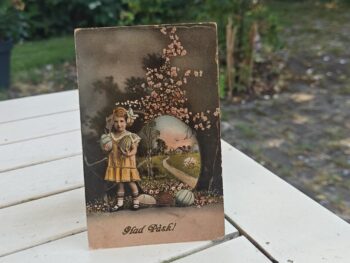 Påskekort. Pige med påskeæg