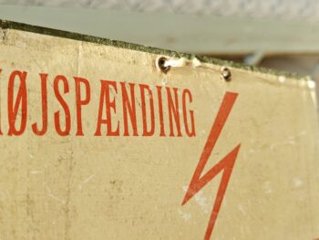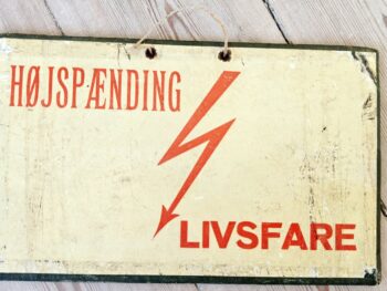 Højspænding. Livsfare. Papskilt. Dobbeltsidet