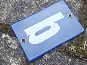 Emaljeskilt. “b”. Hvid tekst på blå bund