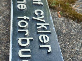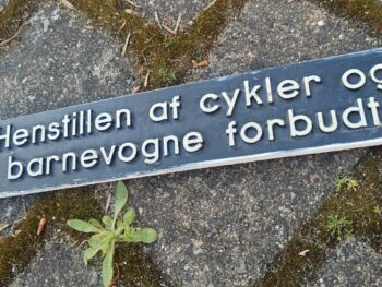 Henstillen af cykler og barnevogne forbudt. Støbt skilt