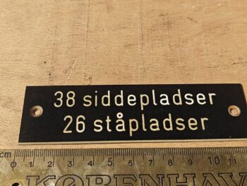 Sporvognsskilt. 38 siddepladser. 26 ståpladser