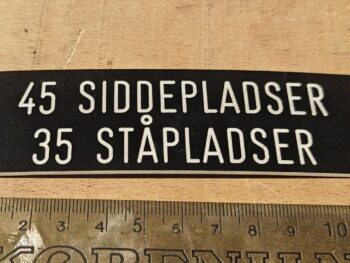 Sporvognsskilt. 45 siddepladser over 35 ståpladser