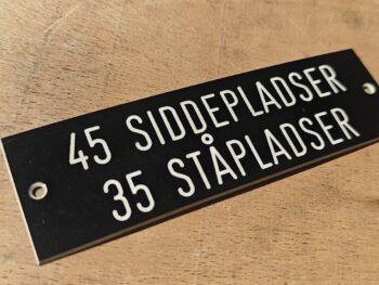 Sporvognsskilt. 45 siddepladser. 35 ståpladser