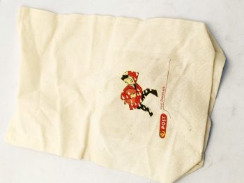 Forenede Tøjrenserier. Eva 1946. Eva 4607. Træbøjle med reklame