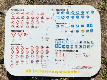 Aluskilte med trafiktavler. Reklame for materielfirma (5)