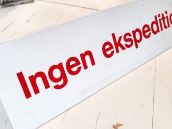 Bordskilt i metal. Ingen ekspedition + Ekspedition. Dobbeltsidet