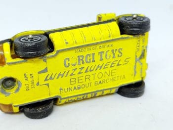 Gul sportsvogn fra Gorgi Toys WhizzWheels. Bertone Runabout, Barchetta