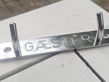 Husnummer – 25 – Rød tekst på hvid bund. Tryk på metalplade