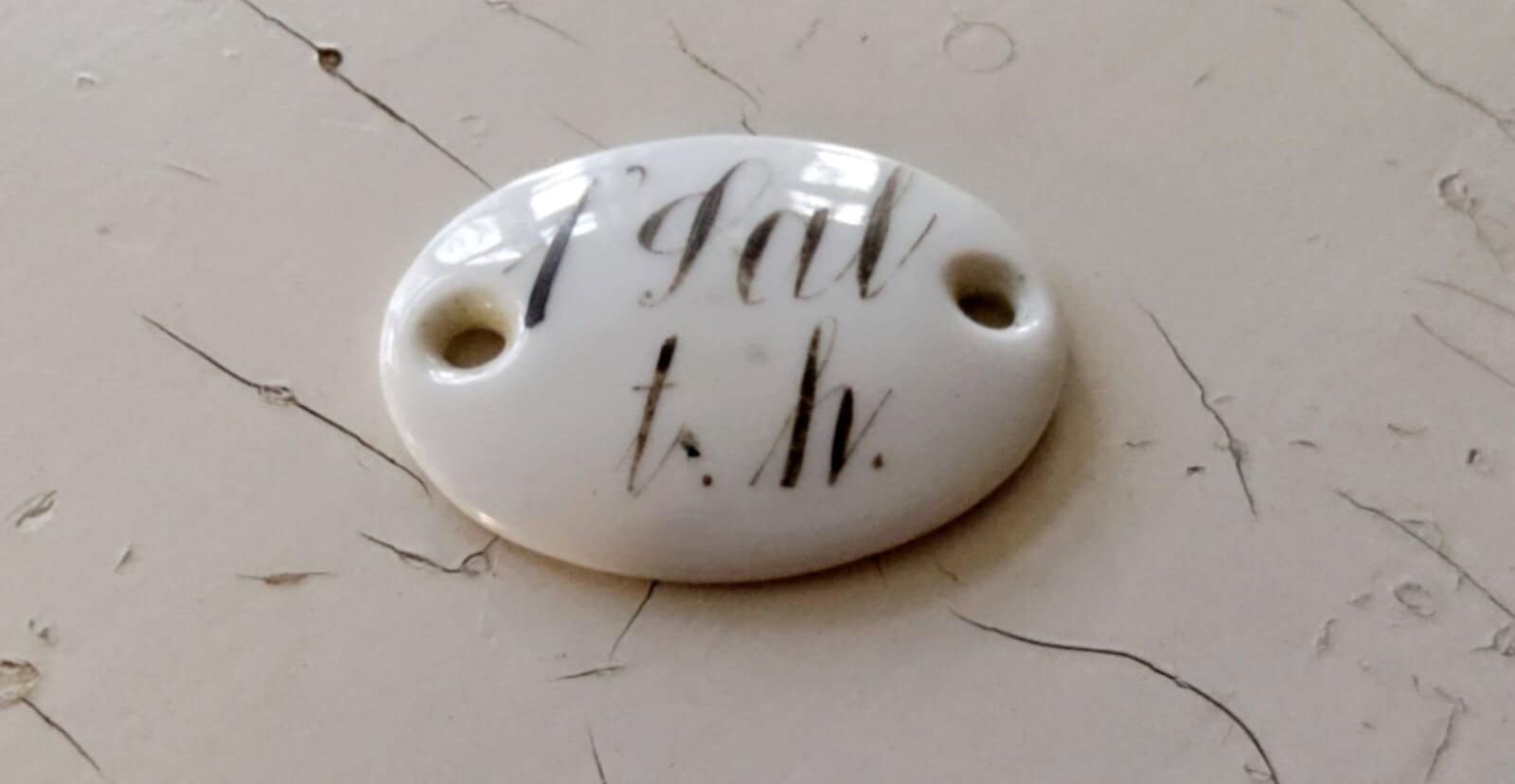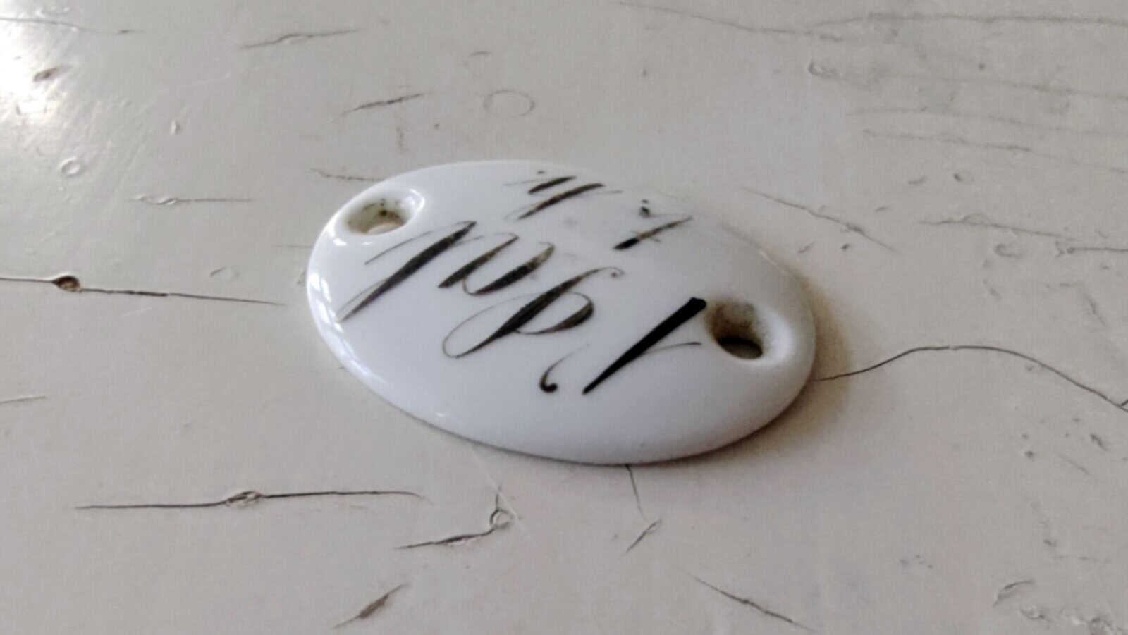 Stort dobbeltsidet messingskilt med ordet “LUKKET” på hver side