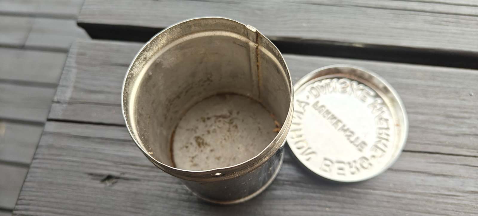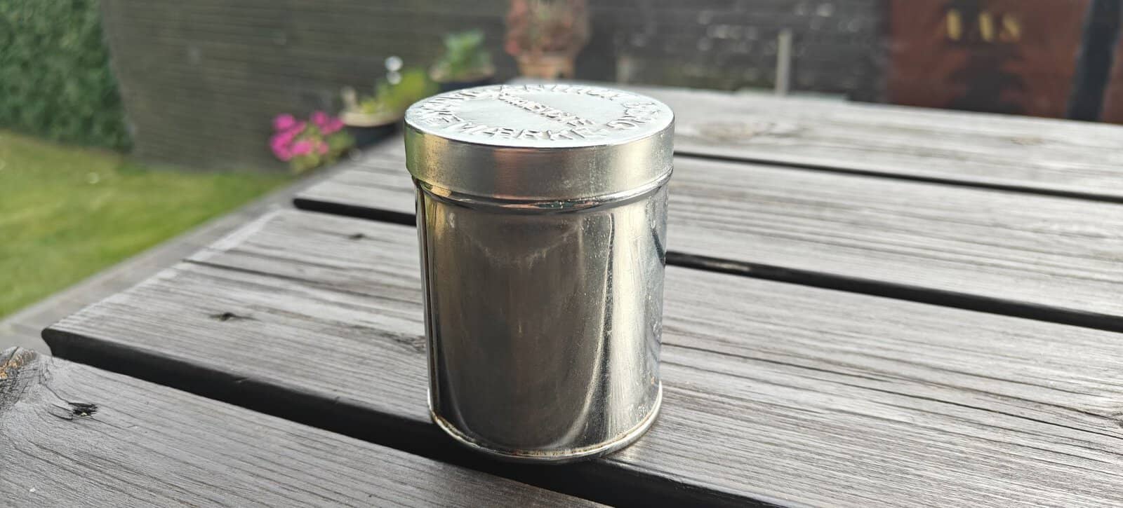 Flot gammel, mindre dåse. Har sikkert engang indeholdt noget lækkert 🍫