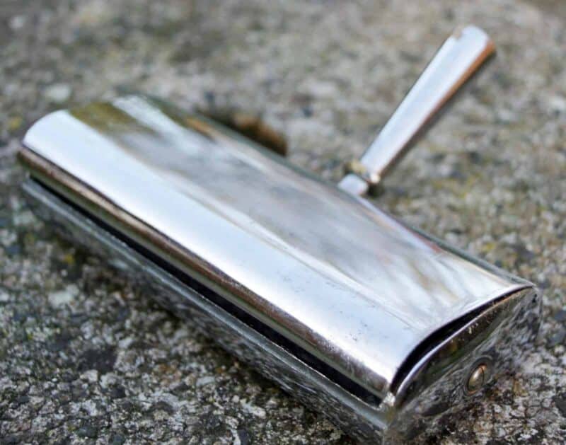 Lækker antik nullermands-opsamler / støvsuger / fnugrulle. Virkelig lækker kvalitet i massiv forkromet messing.