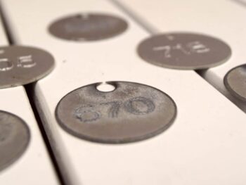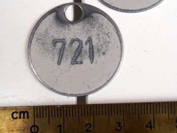 Enkelt hul i toppen hvorigennem der formentlig har siddet et søm.