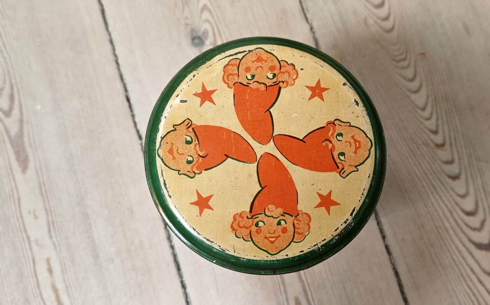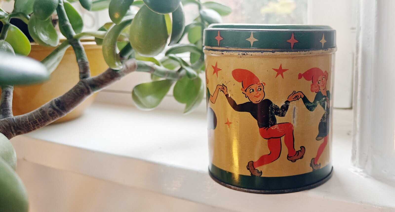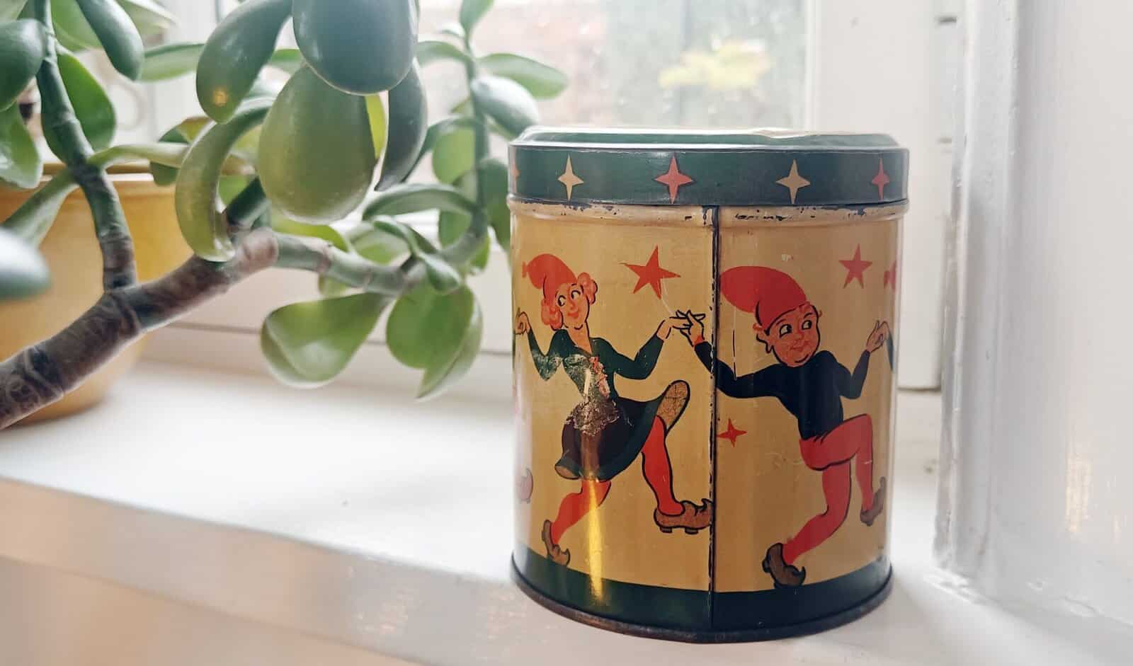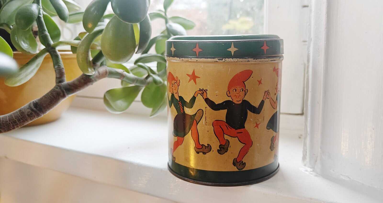 Herlig gammel dåse med nisser på.