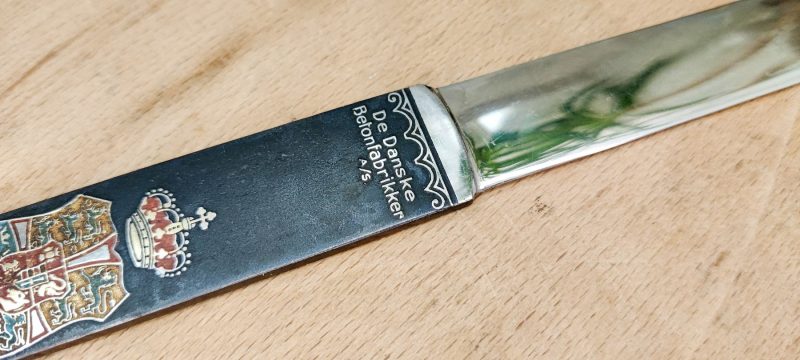 Papirkniv (Brevåbner) fra De Danske Betonfabrikker AS. HK Færdigblandet Beton