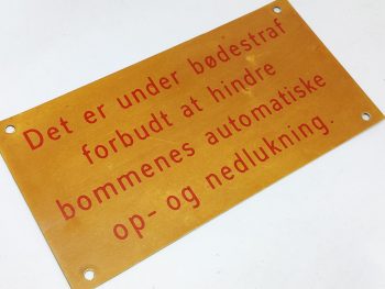 Skilt: Det er under bødestraf forbudt at hindre bommenes automatisk op- og nedlukning