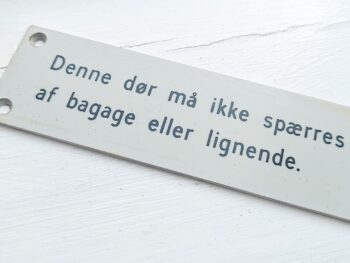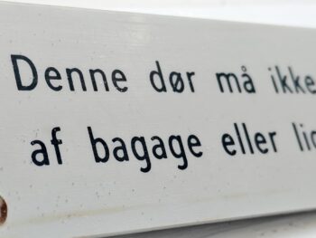 Denne dør må ikke spærres af bagage eller lignende. Sporvognsskilt