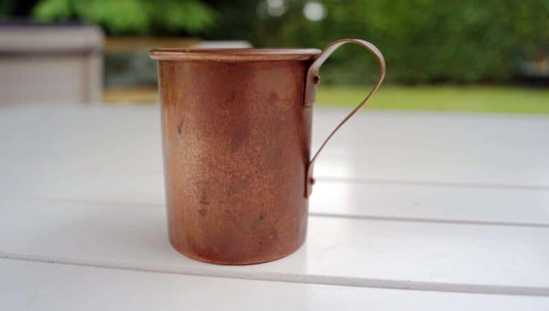 Grønsagsmølle i blik og med gult plastikhåndtag