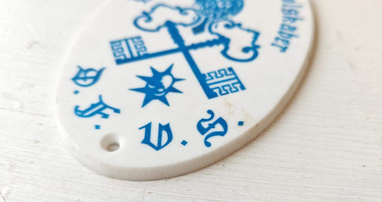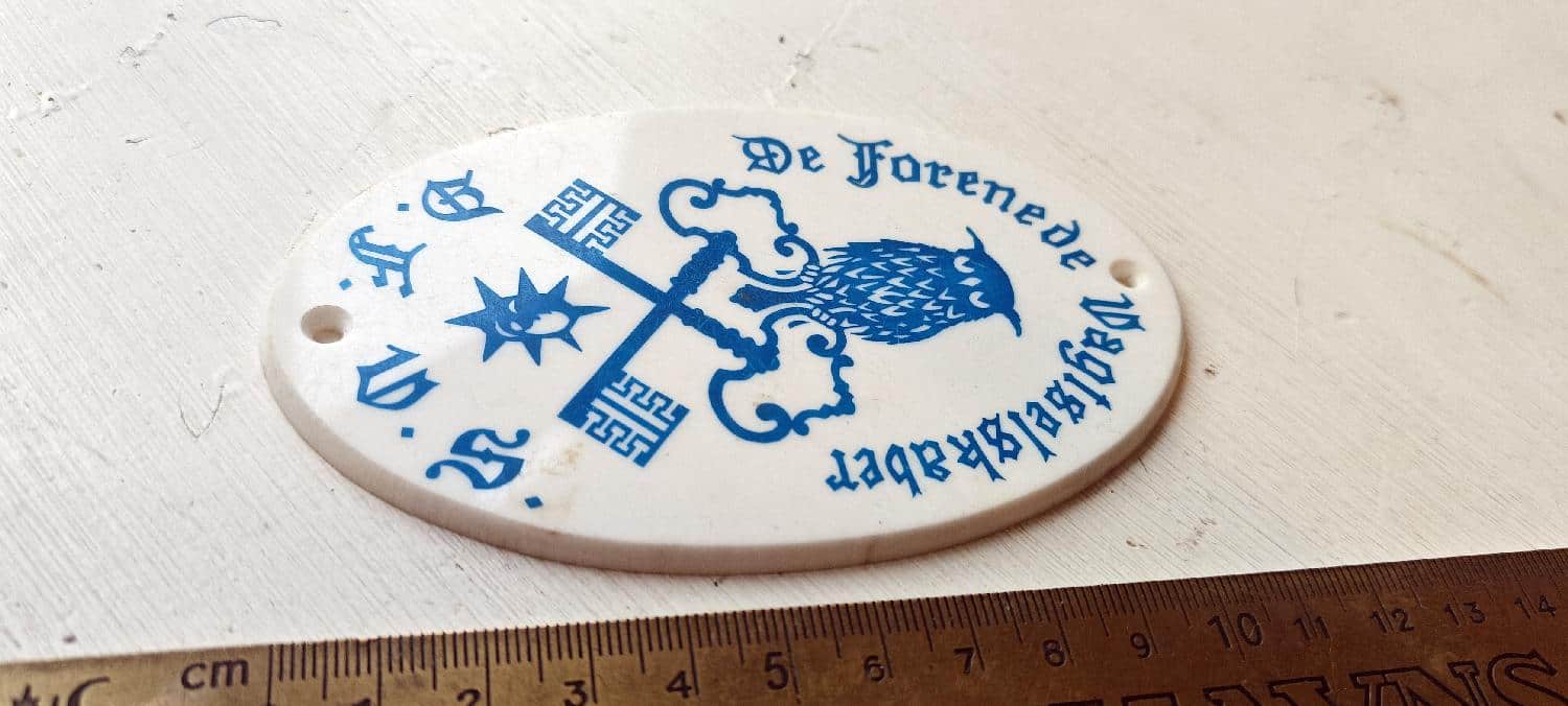 Dørskilt. De forenede Vagtselskaber (oval, plast) Blå udgave