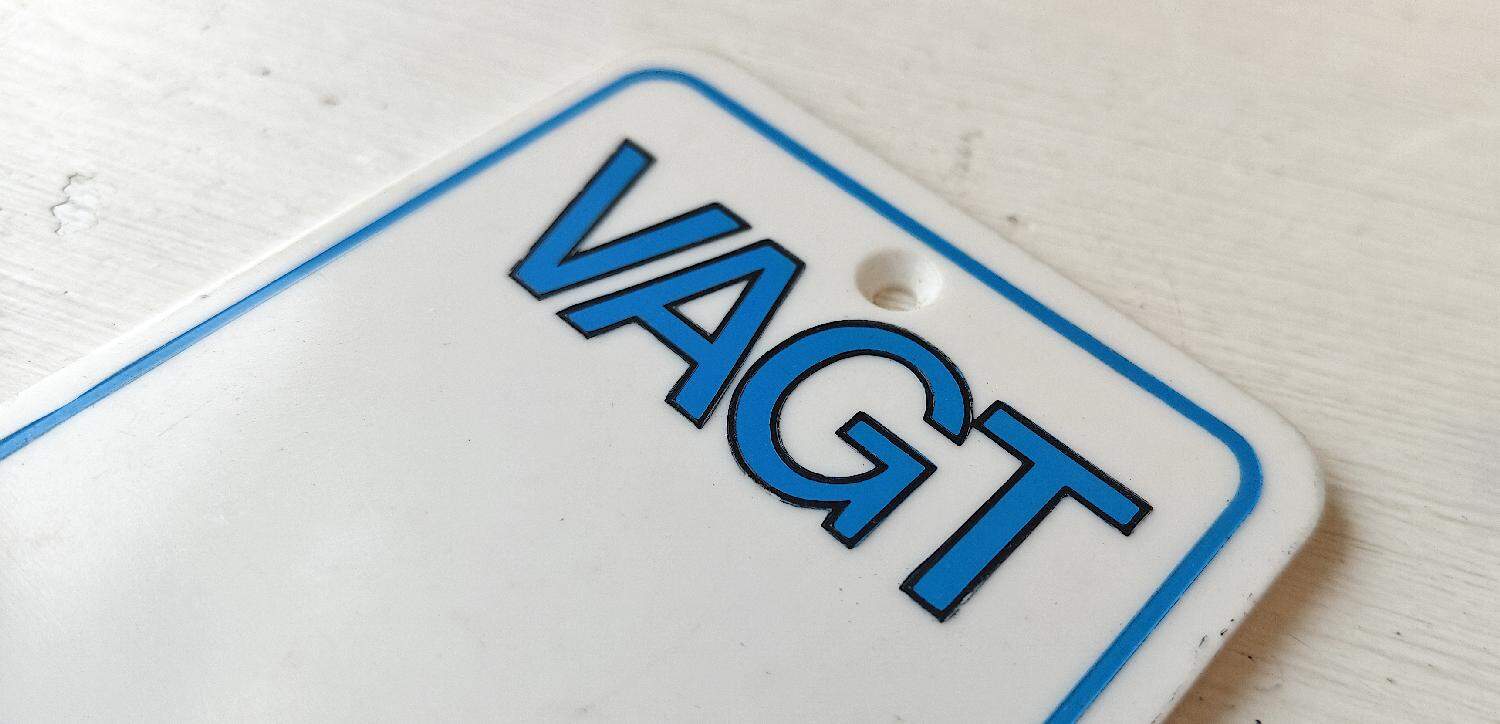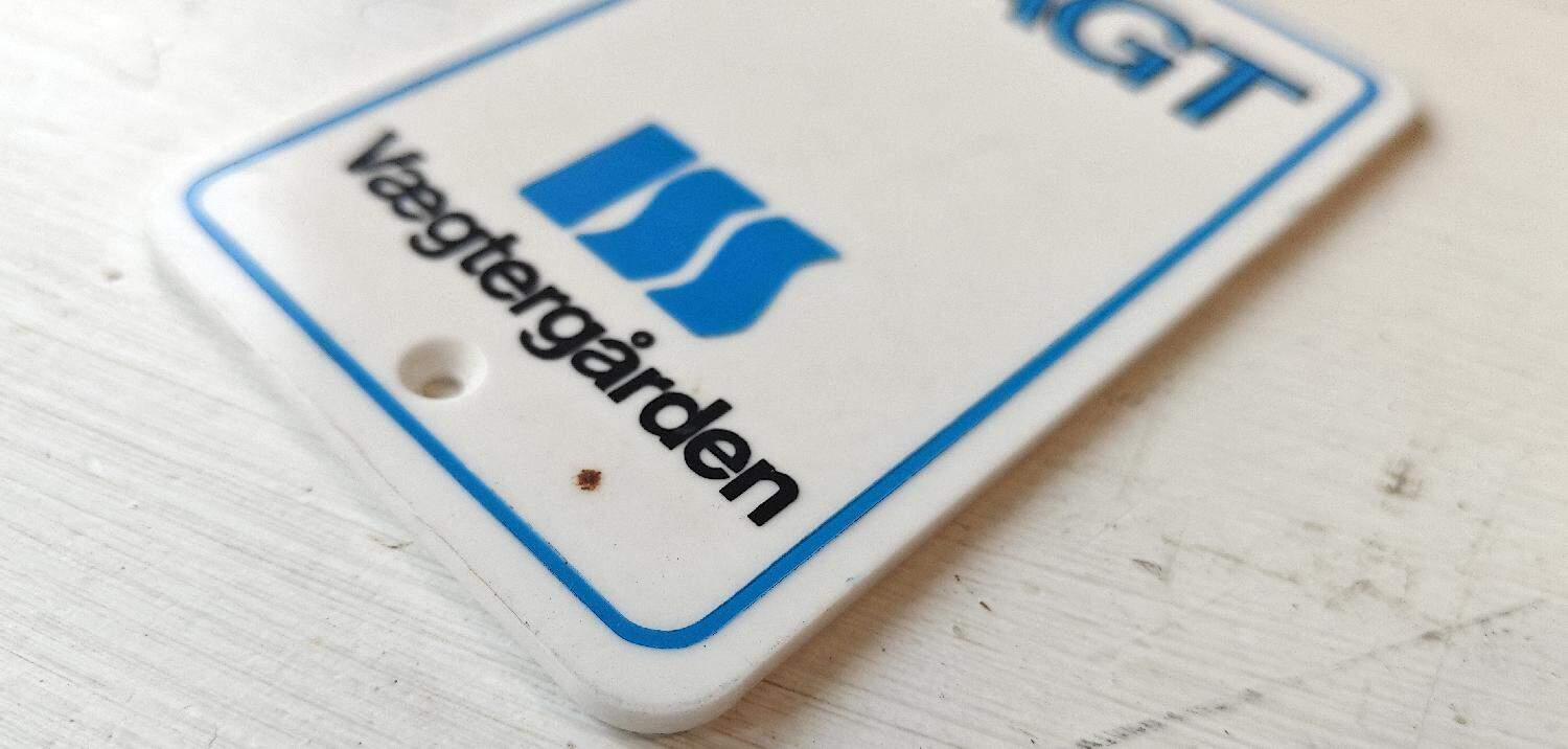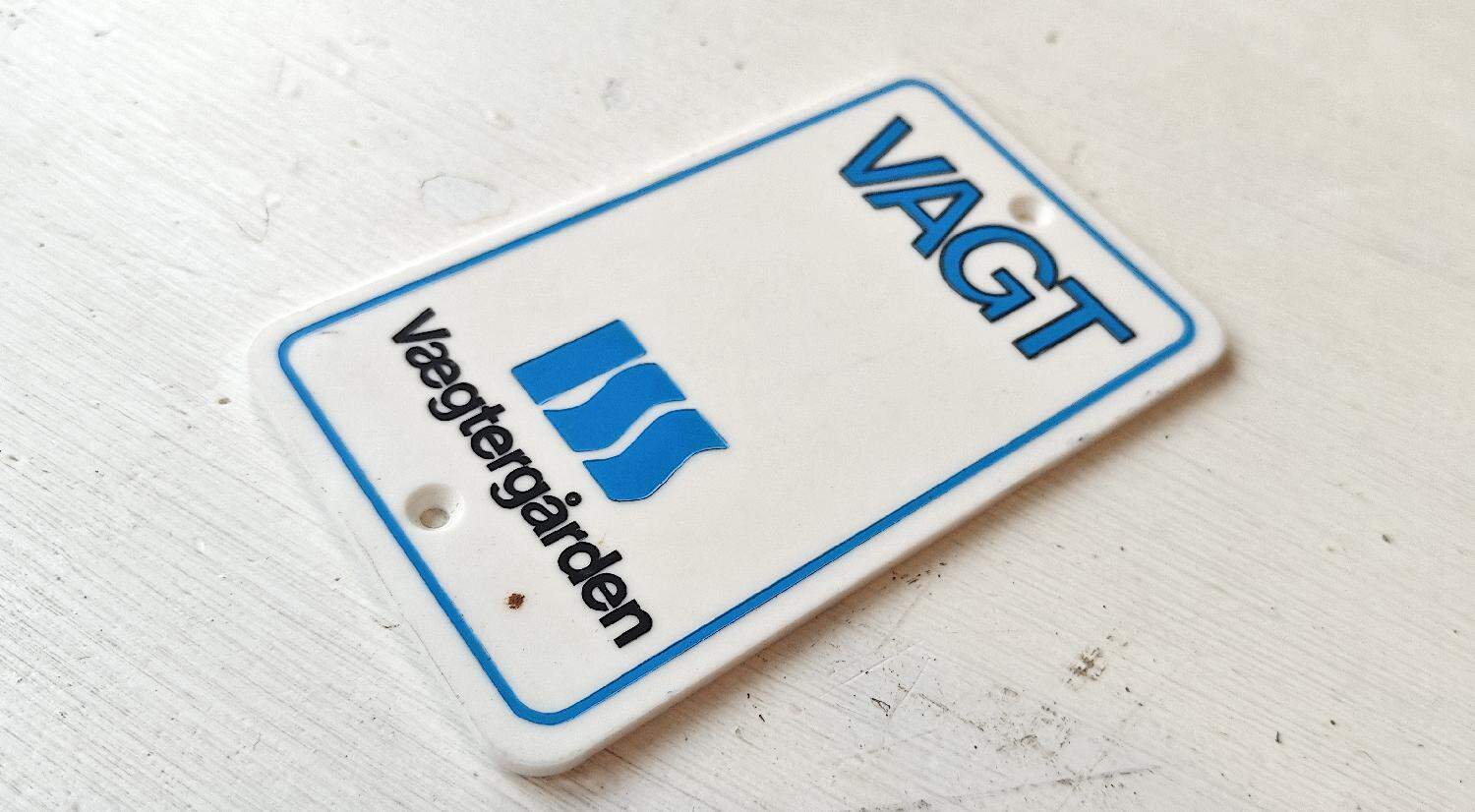 Dørskilt. Vagt. ISS Vægtergården. Plastik