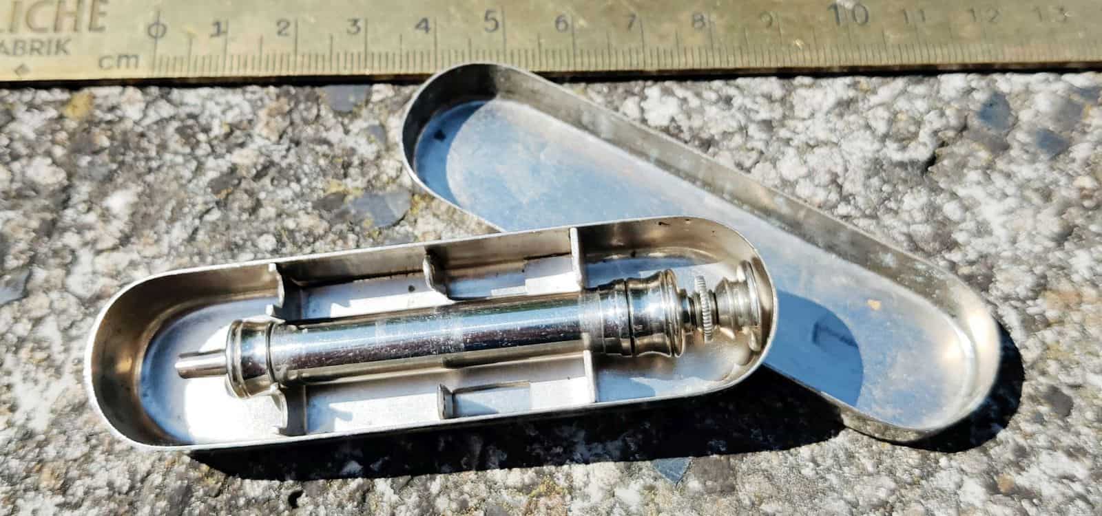 Gammel sprøjte mrk. DSB. Formål ukendt, men standen er super. Virker 100%. Utroligt velbygget.