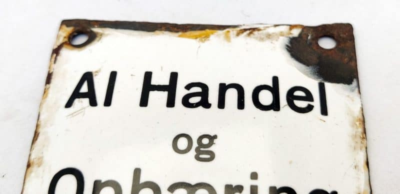 Emaljeskilt Al Handel og opbæring af Varer ad Hovedtrappen forbydes