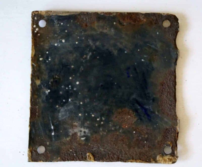 Holbæk Appelsinvand kasseskilt i jernblik. Squash
