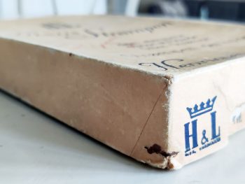 Manufakturhandler-æske. Henriques & Løvengreen. Strømpen der holder