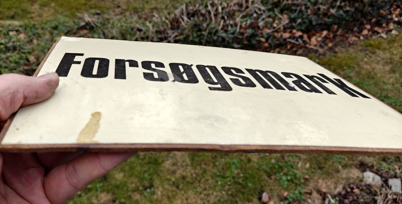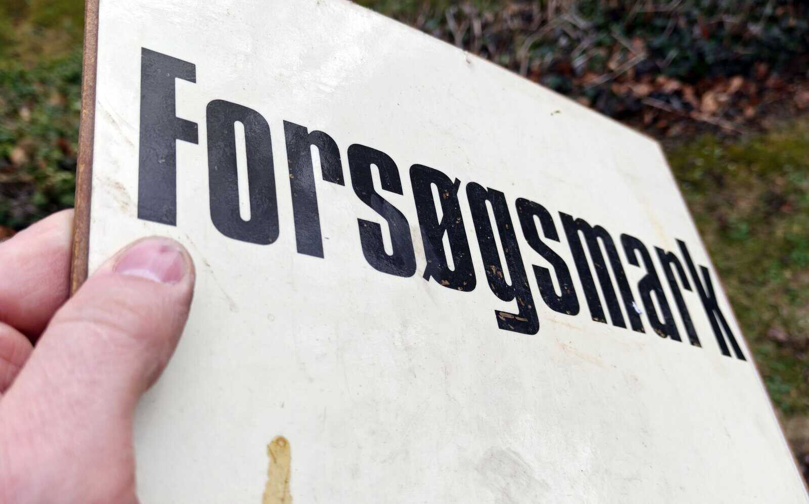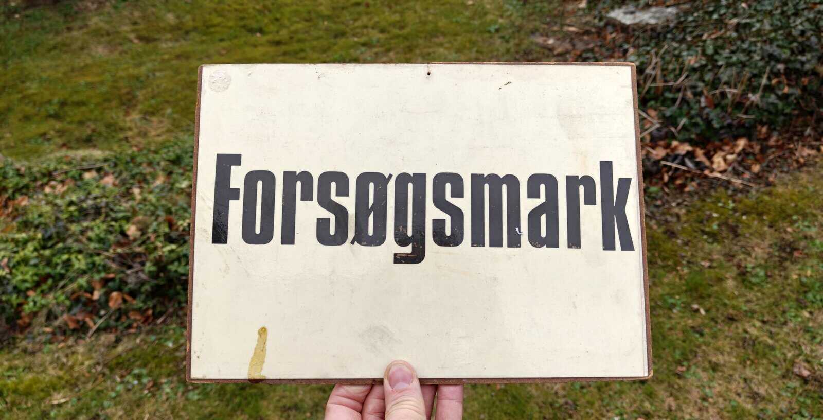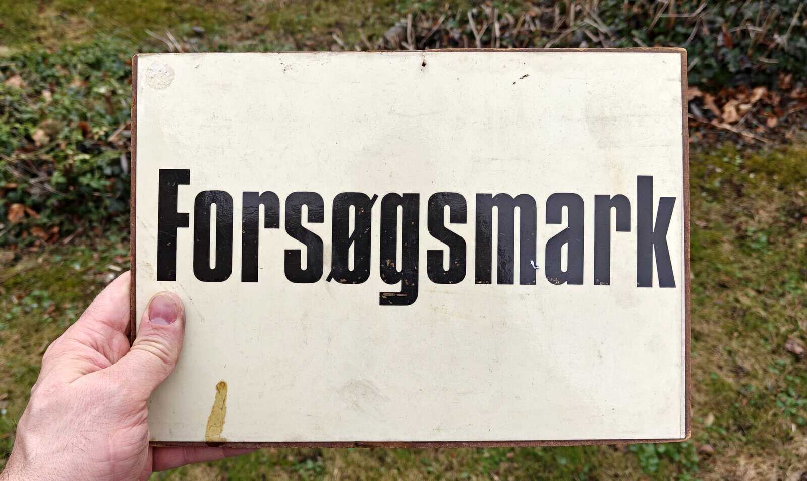 Forsøgsmark. Masonitskilt