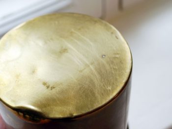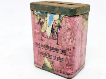 Indsamlingsbøtte. Rød. Brødremeninghedens Danske Missionsforening (BDM) i Christiansfeldt