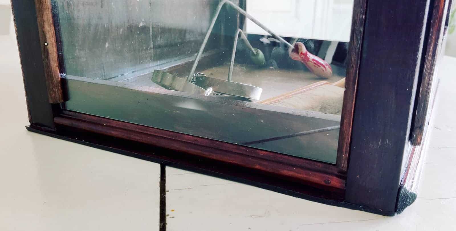 Omkring 100år gammelt. Kan stå på købmandsdisken, eller hænge på væggen. Et smukt gammelt glasskilt med messingknopper pryder toppen. F. Clausen chokoladefabriken Elvirasminde. Guf for nostalgi købmanden, til køkkenindretning, til samleren eller bare dem som leder efter noget som kun få har.