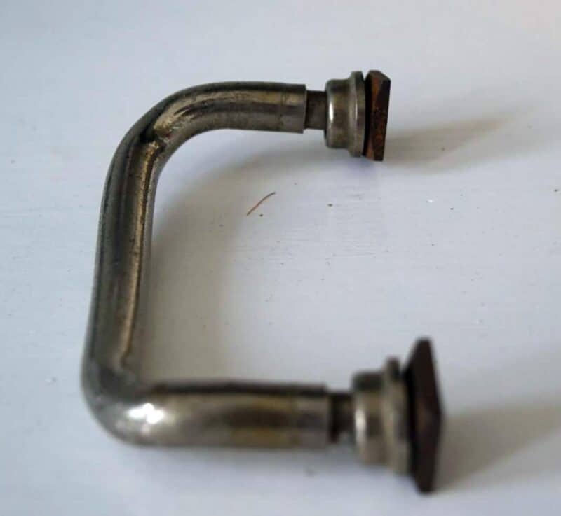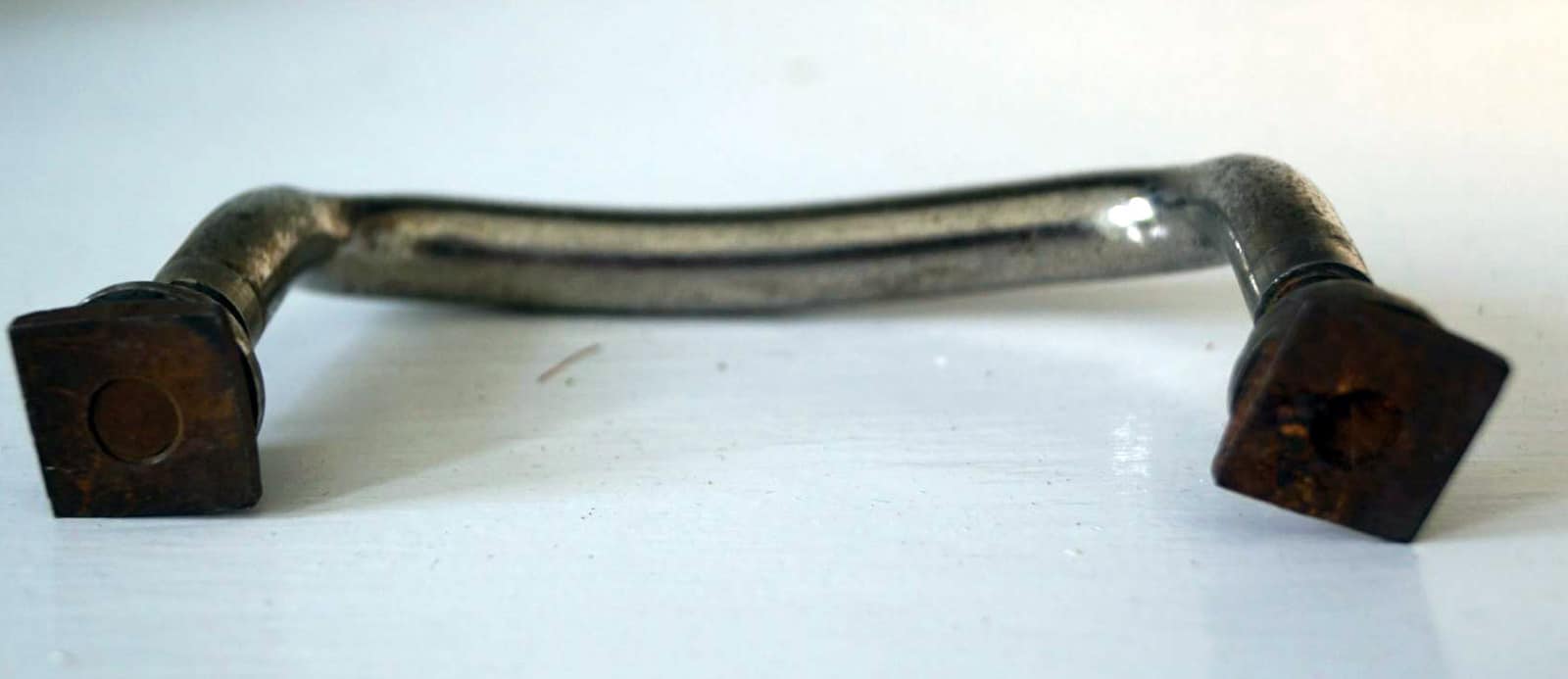 Flot gammelt håndtag til skuffe skab eller lignende. Virkelig solidt og komplet med originale rosetter samt firkantede møtrikker