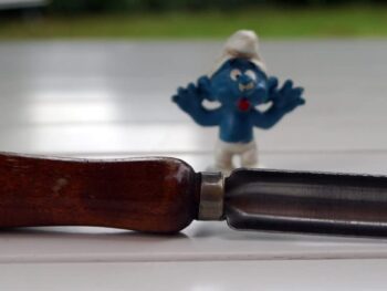 Gammel emaljeret form, lyseblå rund med stjernemønster