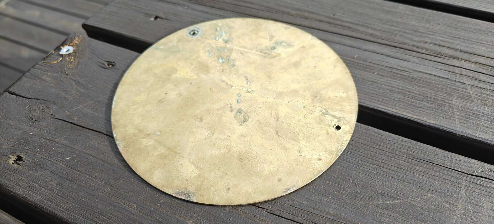 Stort dobbeltsidet messingskilt med ordet “LUKKET” på hver side