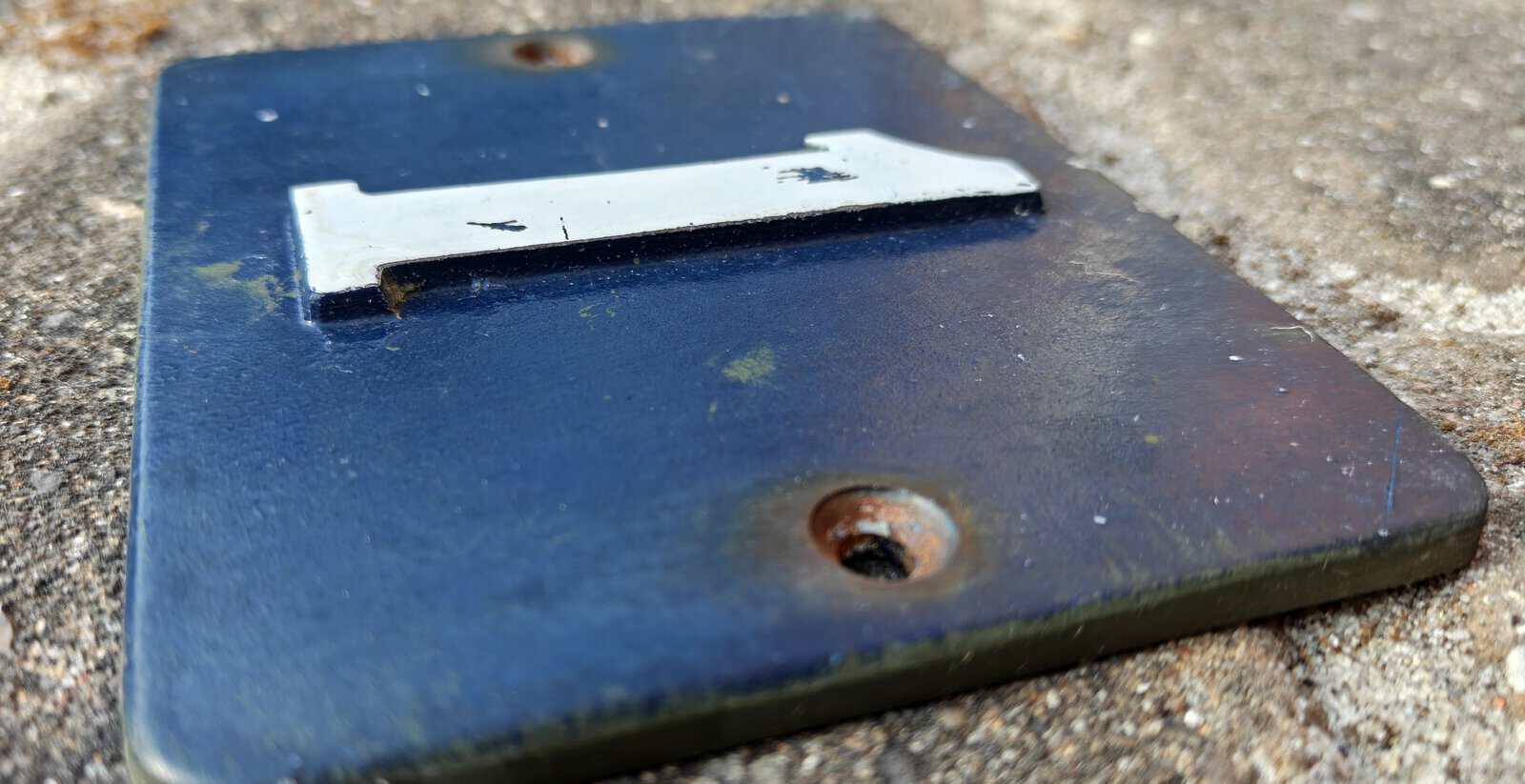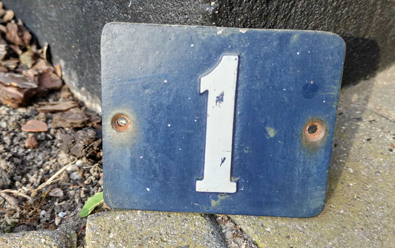 Husnummer 1. Hvid på blå bund. Klassisk. Støbegods
